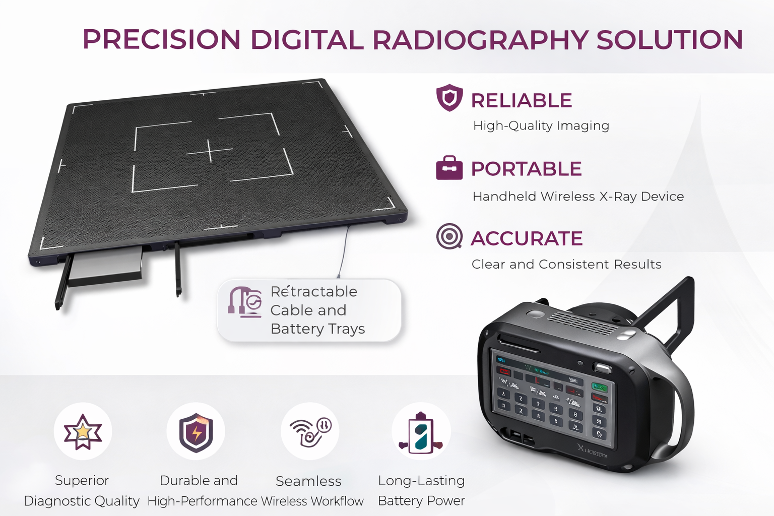 This portable digital X-ray unit combines the X-Shield Hand-Held X-Ray Machine with the Stat Nuke 17″ × 17″ wireless flat panel detector, providing fast, high-quality imaging for foot, ankle, and extremity diagnostics. The system enables point-of-care imaging with low radiation exposure, making it ideal for podiatry, orthopedic, OPD, emergency, and bedside use.